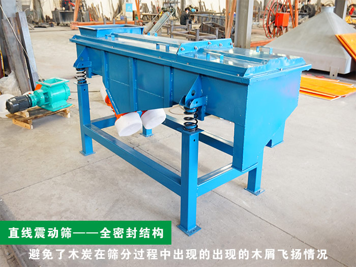 木炭直線振動(dòng)篩整機(jī)全密閉結(jié)構(gòu),避免了木炭在篩分過程中出現(xiàn)的出現(xiàn)的木屑飛揚(yáng)情況,在保證篩分環(huán)境的衛(wèi)生和國家衛(wèi)生標(biāo)準(zhǔn),直線振動(dòng)篩可完全解決木炭在篩分時(shí)對(duì)環(huán)境造成的破壞。