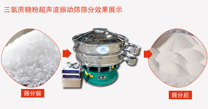 產品簡介:三氯蔗糖粉超聲波振動篩是超聲波技術與振動篩分技術的有機結合,它可以由普通篩分進行簡單的加超聲波系統改造而成,利用超聲波振動篩進行三氯蔗糖的篩分,能夠減少篩分過程的粉塵污染及產品消耗