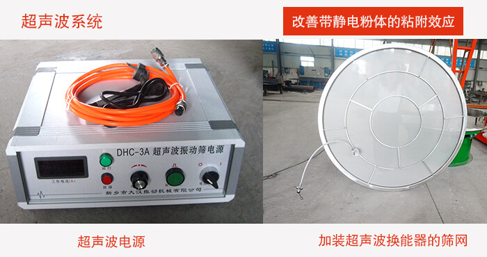 大漢公司根據多年精細分級的經驗,研制出的DH超聲波振動篩分機。使用振動超聲激振器,改變了單一頻率帶來不適應性和不可調性,真正實現超聲波與振動篩的有機結合,性能上達到和超過國際同類產品的水平。解決強吸附性、易團聚、高靜電、高精細、高密度、輕比重等篩分難題,在超聲波振動篩的性能上實現大的突破。