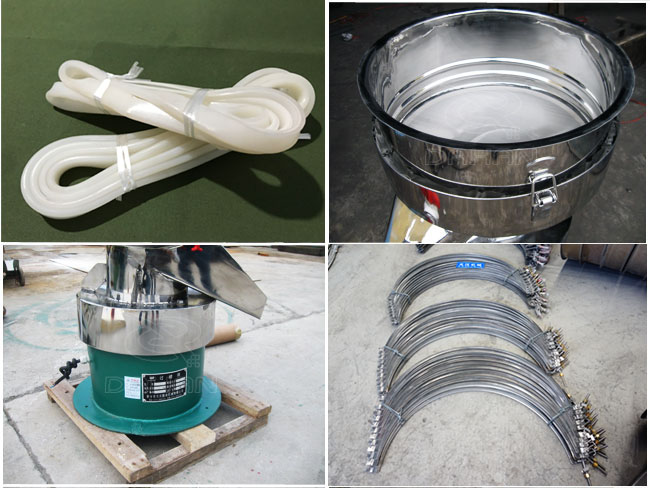 450型過濾篩機是一種低噪音,高效率,便于移動的小型過濾篩,是集粉粒分級、液體過濾為一體的單層振動篩。適用于各行業生產廠家單層篩分和過濾用,處理生產量不多或雜質少的物料,例如:大顆粒含量的粉末篩分與漿液過濾;325目過濾比重1.1的噴漆料,每小時可達1200公升,30目篩分面粉每小時可處理700公斤.不銹鋼(304)材質,機型小巧,重量輕,可任意移動,不占空間。